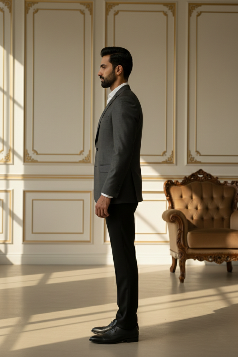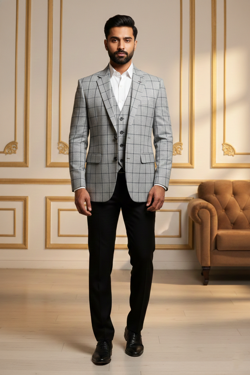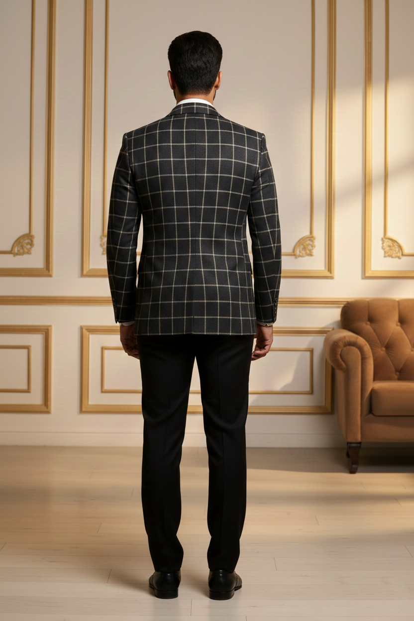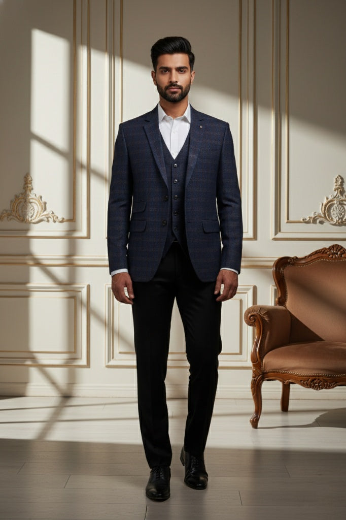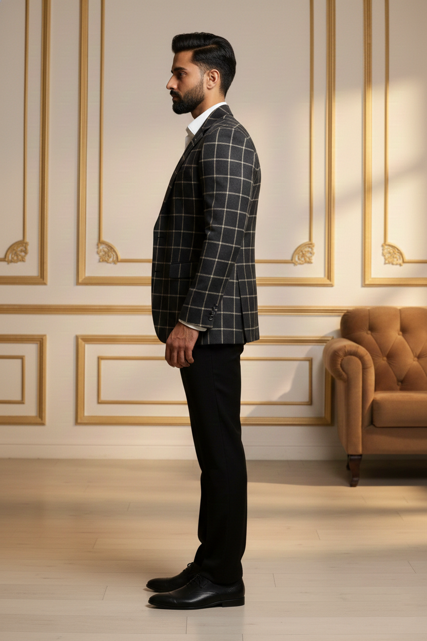 Redefine contemporary ethnic elegance with this Premium Beige Nehru Jacket, a masterpiece designed for the modern man who values tradition with a sharp, sophisticated edge. Crafted from high-quality khadi-textured fabric, this waistcoat features a distinct visual depth that exudes luxury and refinement. The earthy beige tone is perfectly balanced by striking contrast black accents on the mandarin collar and the welt pockets, making it a versatile addition to your festive and formal wardrobe.